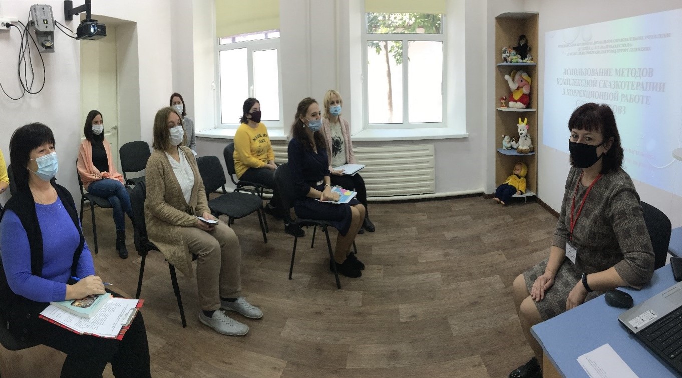 11 ноября 2020 г. в 10:00 Новороссийским филиалом ГБУ КК «Центр диагностики и консультирования» было проведено краевое методическое объединение для педагогов-психологов ДОО по теме: «Сказкотерапия в работе с детьми дошкольного возраста с ограниченными возможностями». На мероприятии присутствовали 3 педагога-психолога ДОУ г. Новороссийска, 3 педагога-психолога ДОУ г. Геленджика В ходе мероприятия педагогами-психологами были рассмотрены различные варианты работы со сказкой с детьми с ОВЗ в ДОУ, рассмотрены варианты диагностики и комплексного сопровождения детей с проблемами эмоционально-волевой сферы. |