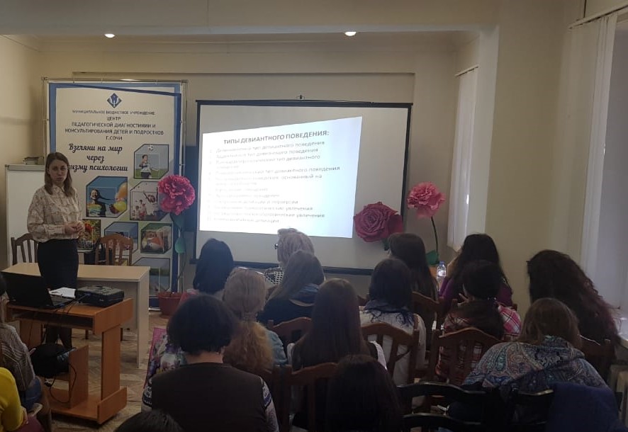 26 февраля 2020 г. в Сочинском филиале состоялось методическое объединение на тему «Взаимодействие специалистов при сопровождении учащихся с девиантными формами поведения». В мероприятии участвовало 56 педагогов-психологов общеобразовательных организаций г. Сочи.